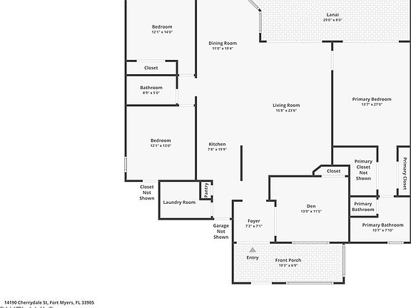 Welcome to 14190 Cherrydale Street. | This 4-bedroom, 2-bathroom home is thoughtfully designed for comfortable family living with upgrades that matter. Durable tile flooring runs throughout, paired with granite countertops and a flexible fourth bedroom or den with a sliding barn door—perfect as a playroom, office, or guest space. The primary and secondary bedrooms include walk-in closets, while the third bedroom features a built-in custom closet for added organization. Families will love the screened and tiled front and back lanais, fenced yard for kids, parties or pets, and pavers that wrap the entire home for easy maintenance and clean outdoor play. Recent updates include a 2023 water softener, 2024 water heater, fresh paint inside and out, added ceiling fans, and canned lighting in the primary bedroom. The home also features full house gutters, manual shutters, a metal roof (2023) with solar exhaust fans, and a Ring camera security for peace of mind. With a dedicated laundry room and practical upgrades throughout, this home is ready for your next chapter! Schedule a showing today!