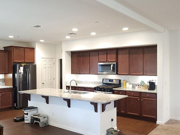 Do not miss this one-year-old new home, clean and beautiful. It has 4 bedrooms 3.25 baths and a 5th room as an office. Up-grades to the original build are wonderful large patio, extra concrete on the side of the backyard, extra kitchen cabinets and amazing blinds. Solar is leased with Sun power. Built with a holiday lighting package and surround sound.