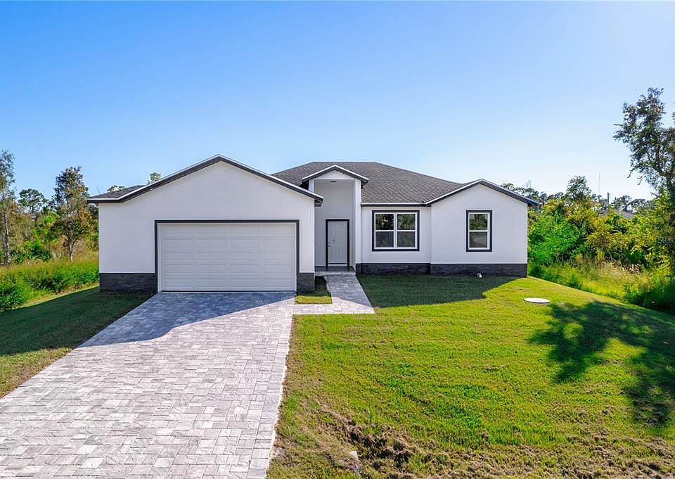 Welcome to 14191 Onslow, a stunning custom-built 4-bedroom, 2-bath home that blends contemporary design with comfort and durability. Featuring 9’4” ceilings throughout, this residence feels spacious and bright from the moment you step inside. The open-concept layout showcases premium 48x24 porcelain tile flooring that flows seamlessly through the entire home, including both bathrooms with elegant porcelain-tiled showers. The chef’s kitchen impresses with premium quartz countertops, a large sink, and Samsung stainless steel appliances, offering both functionality and modern flair. Every detail has been carefully crafted — from the vinyl impact windows and doors that provide peace of mind and energy efficiency, to the paver driveway and porcelain-tiled front porch that enhance the home’s curb appeal. Built with a high elevation to protect against flooding, this property also features a two-car garage, ensuring ample space for vehicles and storage. With 1,750 sq. ft. of living area (2,188 total sq. ft.), this home offers the perfect balance of style, space, and quality craftsmanship. Don’t miss your chance to own this exceptional home designed for modern living in one of the most desirable areas of Southwest Florida.