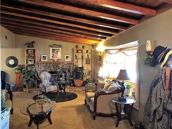 1 acre of fenced horse property and separate living quarters in back includes a kitchenette and 3/4 bathroom. Main house has 3 original bedrooms and attached garage was converted into 2 additional rooms. Formal living room with stone fireplace, gorgeous wood beamed ceiling, dining area, large separate family room. Kitchen features granite counter tops, breakfast bar and tile flooring. Inside laundry for your convenience. Outside has a circular drive, RV parking and the lot is large enough to store all your toys, build a pool or whatever you desire.