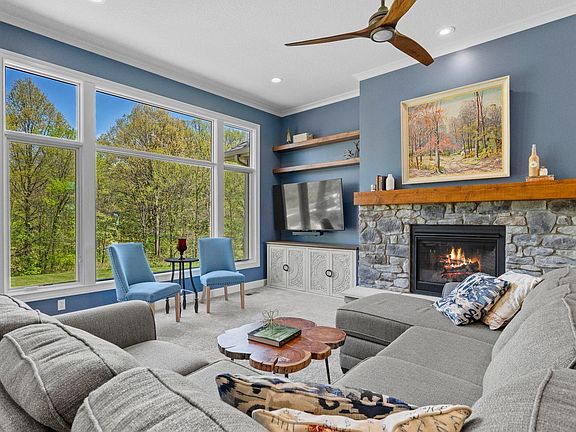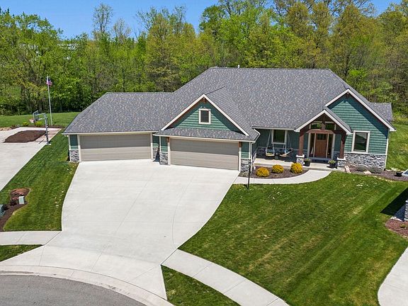 Check out this beautiful, 5 bedroom home sitting on one of the largest lots in the addition. Boasting almost 2 acres, AND partially wooded. You will love the open floor plan on the main level, large windows, vaulted ceilings, and the upgraded features of the stunning kitchen! Complete with stone subway backsplash, quartz counter tops, custom cabinetry, and black matte appliances. It also offers a large walk in pantry. 3 of the spacious bedrooms are located on the main level, and 2 are in the lower level. The Owner's suite has it's own private patio with a beautiful view of the backyard. That ensuite bath has a large vanity with 2 sinks, walk in tiled shower, and loads of closet space. The daylight basement has a large entertaining space, bar area, full bath, and is plumbed for another half bath. The covered patio area shows off the lovely, wooded views of the spacious backyard. Sage Pointe is hosting the Towne & Country Home Tour this weekend. There will be an OPEN HOUSE from 2-4pm this Saturday. Stop by to take a tour through this lovely home!