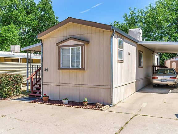 CUTE, CLEAN and AFFORDABLE senior living in this 1999 single wide positioned on the farthest side of the park from the road in Motherlode Mobile Home Park. Convenient location to shopping and town. 2 bedrooms and 1 bath plus indoor laundry (includes washer and dryer), carport parking, room to have fun in the yard or keep it simple and low maintenance. Storage shed for extra storage! Attractive and large covered porch entry perfect for relaxing and sipping a beverage outdoors. Inside is bright and open, with a spacious kitchen, breakfast bar and dining area. The neutral kitchen offers a dish washer, gas oven, microwave, fridge and plentiful cabinetry. The guest room can be an office or sewing area. The bathroom has a sizable jetted tiled tub and shower. The main bedroom is light and tidy, with plenty of space. Easily park two cars in the carport. Make your appointment to see this home today!