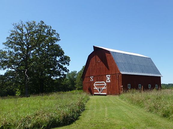 Find your peace, here, tucked away on an Ozark hillside. Watch the eagles fly over, listen to the breeze in the trees & see the view change with each of our four seasons! The specialty home is like none other! The big red barn is one of only a few still found in our area! Enjoy the large Jucuzzi tub in the master suite, the beautiful sun room with french doors and the outdoor patio. Many of the floors are wood and tile. Please see the photos! Outstanding interior decor' with beadboard ceilings, a cozy sitting area near the balcony. Maintenance-free exterior. There is large 2-car garage, security system and the solar panels are in place! There is an outbuilding with a potential canning kitchen (or it could be asocial gathering space)!
