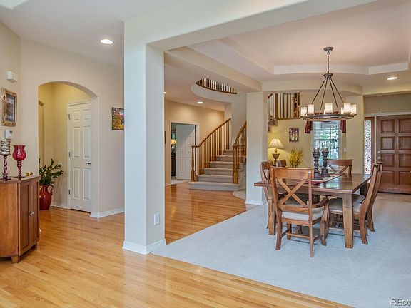 Spectacular Broadlands home featuring 4 bedrooms, 4 bathrooms! Front porch, foyer with tile entry, formal dining, two story spacious great room with fireplace, large kitchen with granite center island and pantry, cabinets with roll outs, vaulted main floor master bedroom suite with 5 piece bath and large walk-in closet and a second bonus closet, powder room, laundry w/ utility sink, private main floor office, pre-wiring for surround sound and wired for networking, spiral staircase to 3 large bedrooms on upper level-jack & jill, the guest suite has a private bath! Reading area in the loft space! The unfinished basement includes 1686 additional sq feet plus a large crawl space! Fenced yard with beautiful stamped concrete and lovely landscape! Unique floor plan! Golf community!Award winning schools in the area! Multiple pools! Close to shopping, restaurants, trails, hiking, schools and more!