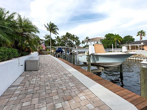 Fully Renovated CBS 3BD/2BA oversized 2 CG pool home with 80'of waterfrontage on a deep wide water direct intracoastal canal with no fixed bridges.All new Vinyl seawall and dock with 15klb lift.Features include a metal roof,impact windows and doors,bamboo hardwood and tile flooring,tankless on demand water heater,LED lights throughout.A gourmet kitchen offers custom soft close white shaker cabinetry,granite countertops,subway tile backsplash,butcher block breakfast bar and stainless appliances.Enjoy an expansive fenced in fully pavered outdoor living area complete with saltwater pool,sun deck and putting green.All interior and exterior work was completed in 2014/2015 including patio,seawall,boat lift,screen enclosure,AC and irrigation on public water.No flood insurance required and no HOA