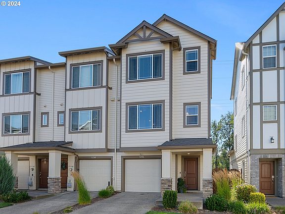 This beautifully maintained townhome offers a perfect blend of low-maintenance living with modern amenities. Located in a desirable River Terrace neighborhood (Portland address with Washington County taxes!) with close proximity to dining, shopping, and parks! The open concept main level creates an effortless flow between living, kitchen, and dining, ideal for entertaining and gatherings. The kitchen is appointed with high-end finishes, including stainless steel appliances and a large eat-in quartz island. Head upstairs to find the generous primary suite complete with large closet and ensuite bathroom. Also upstairs you’ll find an additional bedroom, bathroom, and loft that could serve as an office space, bonus room, or play area. Enjoy the spacious covered deck year-round as well as a fully fenced backyard. The driveway plus extra deep two car garage affords you ample space for parking, storage, hobbies, or even a home gym. Residents have access to community amenities such as a swimming pool, fitness center, clubhouse, tennis court, and more!
