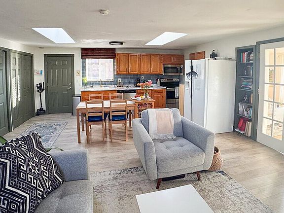 Fully-furnished *OPTION* - Beautifully remodeled 2 bedroom, 1 bath bungalow with breathtaking views of the mountains of Golden, Colorado. Turn-key apartment has it all: bedding, towels, and a fully stocked kitchen. Open floor plan blends living room with kitchen and dining space. Two separate bedrooms are on either side of the living space w/large windows letting in plenty of natural light. In-unit washer and dryer. Private patio oasis includes artificial turf, fire pit chairs and outdoor dining set. Storage shed available for extra items and equipment. Detached home occupied same lot as single family home, but maintains own private 2-car drive, patio space, mailbox and entrance. LOCATION! 1 mi to Van Bibber Park, Indiana trailhead 1.3 mi to famous New Terrain Brewery 1.5 mi to North Table Mountain trails for hiking, biking, dog park 5 minute drive to Downtown Golden 7 minute drive to Intermountain Health Lutheran Hospital 15-20 minute drive to Downtown Denver 15 minutes 40 minute drive to nearest ski resort ADDITIONAL INFO *Utilities: ALL UTILITIES INCLUDED except for cable and internet *Security Deposit equal to one month's rent *Lease term 12-15 months PARKING: *2 total off-street parking spaces PETS *Maximum of 2 pets allowed w/additional screening *$35/mo pet rent per pet *$300 refundable deposit per pet QUALIFYING CRITERIA *650 minimum credit score *Income at least 2x's the rent *NO SMOKING TOURS *We utilize Tenant Turner as our scheduling software *Please input all details and answer all questions to be scheduled for an in-person tour Pet Details: Maximum 2 pets