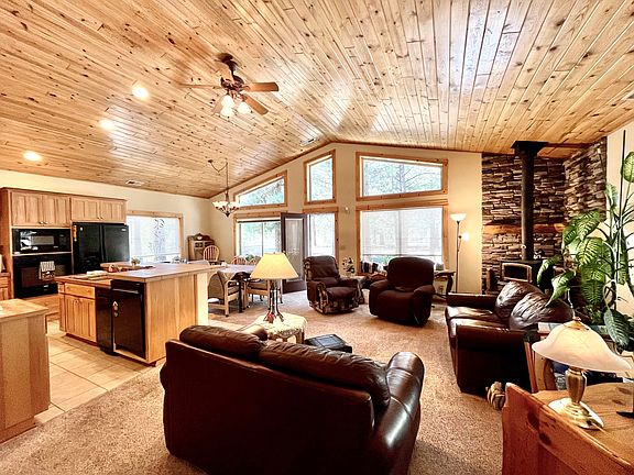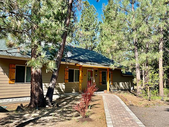 Appealing NW architectural elements of knotty pine & stone provide a warm welcome into this sweet, single-level builder's own custom home, affectionately known as ''A Place in the Pines.'' Beautiful, open great room w/cornerstone woodstove and a stunning wall of windows overlooking the park-like backyard + miles of National Forest offers a peaceful respite from a busy world. Expansive kitchen w/walls of custom hickory cabinetry, newer appliances, and heated tile floors ensure warm social gatherings & tasty meals enjoyed from the sunlit dining area. Cozy ensuite primary bedroom w/heated flooring & jetted tub, plus private patio for enjoying afternoon tea amongst nature's furry & feathered friends. Detached 720 sf garage w/workbench area + tons of storage, enhanced by the upstairs heated bonus room with private entrance stairway. Located just footsteps from the mighty Big Deschutes River, this Wild River at Pringle Falls getaway beckons a special look!