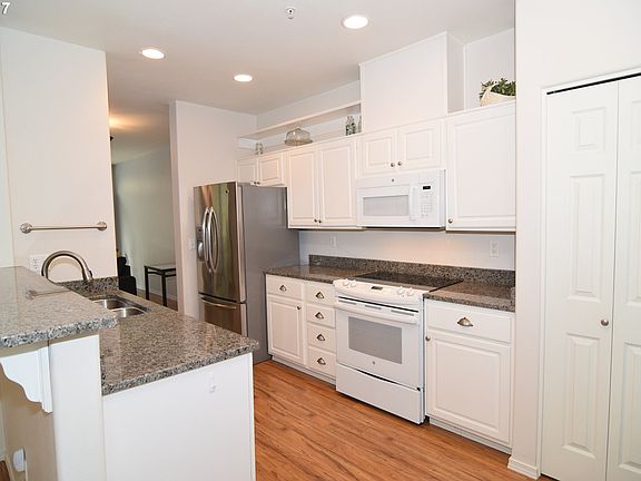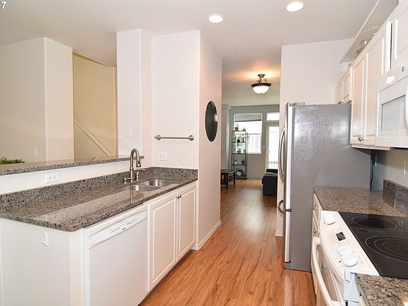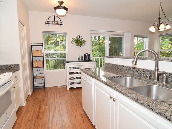 Sparkling, light & bright townhouse style end unit w/ AC. Kitchen features granite counters, SS Fridge, newer appliances, eating bar & open to spacious dining area w/door to 1 of 2 decks. Spacious LR w/ 2nd deck & gas fireplace. MB has W-I closet & bath. 2 additional BR up. Lower level has office/den or 4th br w/ 2 closets & door to covered patio. Wash/dryer included. Near Progress Ridge & new Mountainside HS!