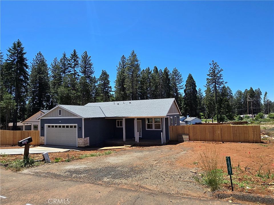**NEW 3 BED/2 BATH HOME WITH A FULLY FENCED YARD and NEW SEPTIC and LEACH Lines!! Step onto the large covered front porch that is a welcoming space and into a brand-new home waiting for your personal touches. Once inside you will be greeted by the grandeur of vaulted ceilings, setting the tone for the elegance that awaits within. Equipped with modern amenities that enhance convenience and security, you can stay connected with internet connections in each bedroom, providing dedicated ethernet connections for fast and reliable connectivity and the Wi-Fi enabled temperature control allows you to adjust the climate of your home with ease. The open living area is complemented by an electric fireplace, providing a cozy ambiance for gatherings and relaxation. The kitchen is a true masterpiece, boasting stainless steel GE appliances with black accents and a large farm-style sink. These appliances combine sleek design with advanced features, ensuring a seamless cooking experience that will satisfy even the most discerning chef. The large center island is a dream for extra workspace or for entertaining. The Master bedroom is spacious and has 9ft ceilings, ceiling fan & light and a walk-thru closet that enters to your private bathroom. The master bath has a large walk-in shower and quartz counters with dual sinks. The guest bathroom sits between the 2 guest bedrooms and offers attractive, high-quality fixtures & quartz counters as well as a full tub/shower. Additionally, the garage features an 8' door with a silent side mount motor and backup battery for peace of mind for every entry and exit. Conveniently located less than a mile from the grocery store, multiple shopping options, post office and dining! Plus, it is a quick and easy commute down Skyway to Paradise & Chico. How about fishing & water sports and outdoor adventures? This lot is a short drive to Paradise Lake, DeSabla Lake, Lake Oroville Marina or the Feather River! Enjoy the benefits of being in the Paradise Pines Property Owners Association as well. You are only a short drive the clubhouse with association amenities including the clubhouse with meeting rooms & library, 2 event centers with full kitchens, full bar & lounge at clubhouse, pickle-ball courts, bocce ball court, children's playground, hiking trails, swimming pool & spa and so much more!