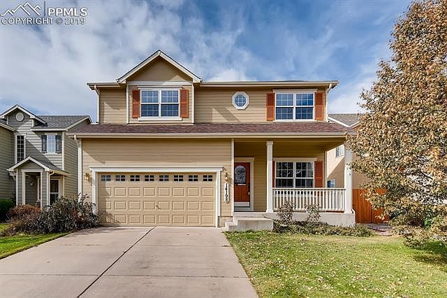 Fantastic 2 story home in the desirable D-20 school district. 3 bed/3 bath/Loft/2 car garage. Spacious kitchen w/walk in pantry & walk-out access to deck. Main floor laundry/mudroom, gas fireplace & amazing mountain views. Upstairs has a large master w/attached large 5-piece bath room & closet, loft, full bath & 2 bedrooms. Fenced in backyard, professional landscaping and unfinished basement. Close to the Air Force Academy, easy access to I-25, Powers and Denver. Shopping & restaurants close by. Great location! New deck and sliding glass door, cement patio, all appliances included, humidifier, newer garage door and opener.