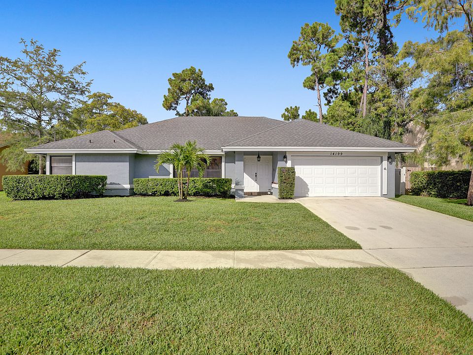 Spacious pool home with 4 bedrooms, 2.5 bathrooms in Sugar Pond Manor, a ''No-HOA'' neighborhood. Upgraded kitchen with upscale wooden cabinets, color coordinated tile backsplash & counter tops that overlooks the family room. The large free-form pool is visible from the master bedroom, eat-in kitchen, dining room, guest bedroom & cabana bath. High volume ceilings & split floor plan give the home a bright, open feel. In the back of the home you'll find a covered patio & oversized screened-in pool with a large patio deck that's perfect for entertaining. This home has a whole home reverse osmosis water system and new A/C (2022). At price, this move-in-ready home comes with an American Home Shield home warranty. Located in a top rated Wellington school district & around the corner from the... ...local Publix shopping plaza. Sugar Pond Manor is in close proximity to the International Polo Club, Wellington Equestrian Festival fairgrounds, excellent local restaurants & the Wellington Green regional mall. Easy access to Florida's Turnpike, I95, Palm Beach international Airport & everything the Palm Beaches has to offer.