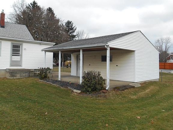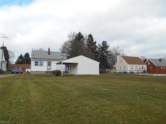 Spacious vinyl sided bungalow in Canton South. Main level has open concept floor plan featuring a kitchen with plenty of cabinet and counter top space and breakfast bar, a formal eating area, a living room with door leading to the back yard, and family room. There are 2 bedrooms, with one of them having washer/dryer hook-ups for a 1st floor laundry room, and a full bathroom with walk in shower on the main level and another large bedroom upstairs with plenty of built in storage. The full basement has an updated full bathroom and a rec room with bar. Other features include a great covered patio area overlooking the flat back yard, newer vinyl windows, newer roof, A/C, detached garage with opener and more. Conveniently located in Canton South close to shops, schools, parks, restaurants, church's and easy access to the highway.