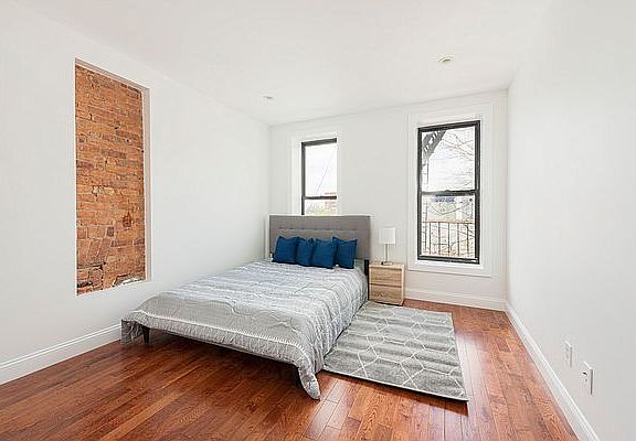 Newly Renovated Floor-Through 3BR/2BA with Central Air Conditioning and in-unit W/D in Boerum Hill EMAIL IS THE PREFERRED METHOD FOR SCHEDULING A SHOWING OR ANY OTHER INQUIRIES. This second floor 3-bedroom, 2-bathroom apartment enjoys eastern and western light, a renovated kitchen, and an open plan living and dining area with exposed brick accents. The apartment's open area is welcoming and bright, featuring two large windows facing east. A fully appointed kitchen with Caesarstone countertops, white lacquer cabinetry, and full-sized stainless steel appliances is nicely separated from the main living area, allowing flexibility for a separate dining area adjacent the open kitchen. The in-unit laundry is not pictured, but is to the left of the refrigerator. There are three bedrooms, one facing east and two facing west overlooking the garden. Each well-lit bedroom includes ample closet space. Two full baths are located in the center of the apartment, one with a stall shower and the other with a soaking tub. Modern amenities in this beautifully renovated apartment include central air conditioning, a fully renovated kitchen, in-unit washer/dryer, and recessed lighting throughout. The apartment also has new hardwood floors, exposed brick accents, and a decorative fireplace in the living room. The building is equipped with a Latch keyless entry system, allowing residents to enter the building via a smartphone app and manage deliveries remotely. The building is also professionally managed, featuring a dedicated super and an online portal for rent payment and maintenance requests. Subway access nearby includes the R-train at Union Street, along with the B, D, N, Q, R, 2, 3, 4 and 5-trains at Atlantic Avenue-Barclays Center (with an entrance on 4th Ave and Pacific Street). Enjoy outdoor dining or takeout from great local eateries like Three's Brewing, Public Records, Dinosaur Bar-B-Que, Bogota, Negril, Alchemy, and al di la Trattoria. 142 4th Avenue also nearby to the stores at Atlantic Center. Some photos have been virtually staged. Please note that these photos are of another apartment in the building with a similar layout.