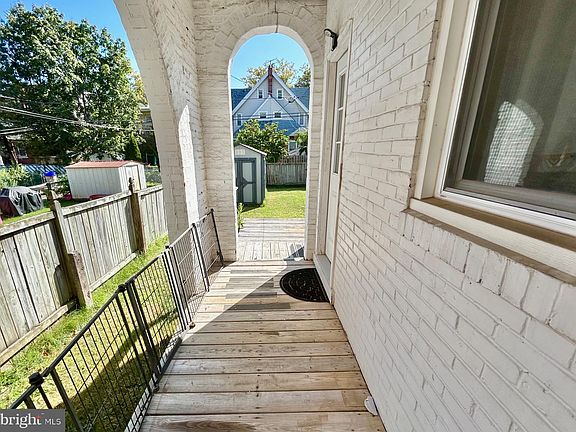 With all of the charm in the Village of Roebling, this end-unit row home offers over 1300 sq ft of living space, and a full basement, as well. The open front porch will invite you to relax and enjoy the neighborhood and provides a roof covering for those inclement days. The entry into the main level presents an open feeling with the combo living/dining room boasting 25' in length. Crown molding is installed on the 9 foot ceilings adding a nice finishing touch to this room. The kitchen has been updated and provides plenty of cabinets and countertop areas to make this a real working kitchen. There is rear door access from the kitchen which leads to the arch-walled side porch and to your rear manicured yard with a shed included. The upper floor provides 3 very spacious bedrooms and an updated bathroom. The 2nd floor hallway has laminate flooring for a nice clean appearance. Notice the beautiful window at the stairway with the stained glass appearance, that accentuates the classic wood railing to the upper floor. The full basement provides laundry space and lots of available storage areas. The roof was redone about 6 years ago, there are newer replacement windows throughout, and a gas heater is installed. For those who rely on public transportation, this home is a few blocks away and a short walking distance to the River Line Train Station. The public bus route is at the end of the block. Commuters love the location with all of the easy access to major roadways and Turnpikes. Roebling homes offer so much charm at such affordable pricing. Being an end unit adds value to this home, so do not wait to view this one and make it a point to call this yours!