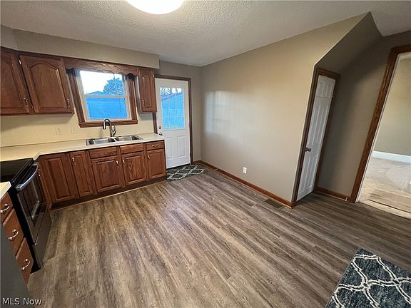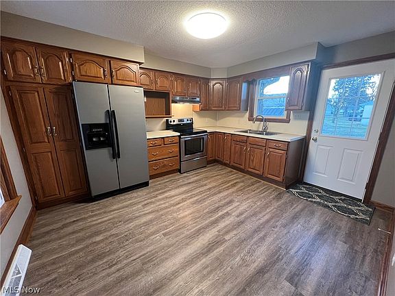 Move in ready! Tastefully updated 3 bedroom vinyl sided home. Freshly painted with new floor coverings throughout. Oak kitchen with stainless steel appliances. Vinyl replacement windows throughout. 2 car detached garage with separate electric. Large level lot with storage shed. Potential business location.
