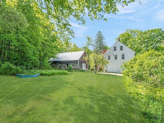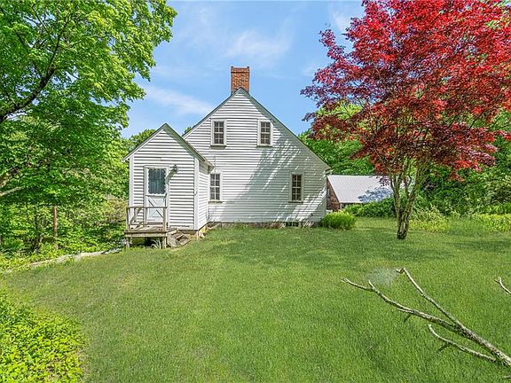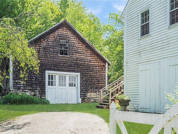 Antique Home Abounding in Charm! Ten room Cape Cod style home, constructed around 1800 as a wheelwright shop with 2028 square feet of above-ground living area offers many possibilities and will be sold in "as is" condition. The main floor consists of a living room, keeping room, kitchen, office, three bedrooms and a full bath. The second floor has 2 bedrooms, full bath and a spacious landing. The lower level has been finished into two workshops with high ceilings and lots of natural light. Full double doors open to the driveway. 23' x 32' barn with dirt floor and high ceiling height has a newer aluminum roof and the structure has been secured though it is still in need of additional repairs. Enjoy picturesque views of a waterfall from garden area and the back of the house. Another outbuilding 39' x 24' was a glass blowing shop with cement floor, electricity and formerly had water connection from the house. The lot is 1.91 acres. Also to be conveyed with home is a legal non-conforming 4-acre lot across the street with a stream passing through, large percentage of wetlands on the property but a great privacy buffer.