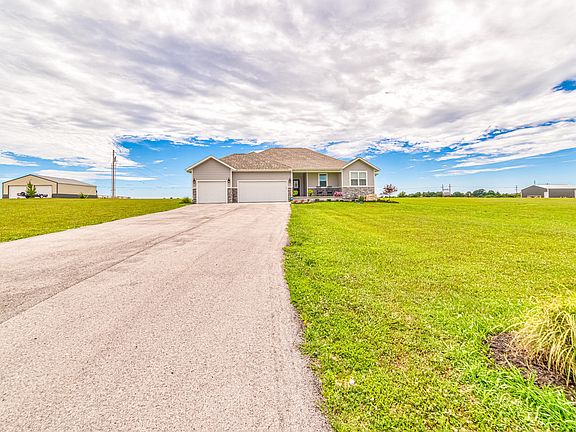 Custom built one level charming home on 3 acres in Ozark Schools. The home features 4 bedrooms, 2 full bathrooms,3 car garage, split bedroom floor plan, wide plank hardwood floors, spectacular kitchen with large center island full of space, pantry, granite countertops, soft close cabinetry, large laundry/mud room with lots of built in shelves and a stacked stone gas fireplace in the living area. New shop building with double overhead doors and concrete floors has been added.