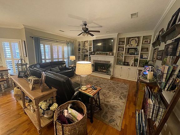 Beautiful brick home in a friendly, quiet neighborhood. 4 bedrooms, 3.5 baths. Original hard wood flooring. Office and dining room off the foyer. Wide open floor plan. Updated kitchen with stainless appliances. Large bonus room upstairs. Large enclosed sunroom. Covered patio with fireplace and TV. Large backyard with new boulder retaining walls and gorgeous rock scenery. Landscape lighting. Spacious detached garage. Excellent for a third vehicle or storage, heated and cooled.