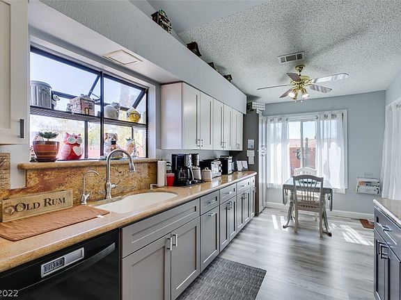 Cul de sac location in Henderson with NO HOA welcomes you home to Turn-Key, Completely Upgraded Single Story Stunner with Sparkling Pool & Spa!!! Feel & see the Pride of Ownership the moment you arrive! Big items have all been Replaced! Newer Roof, AC, & Windows! A few exciting Upgrades & Features include Reverse Osmosis, Solar Shades & New Luxury Flooring! New Granite Kitchen and Cabinets complete with contemporary, sleek design hardware completed in 2022! RV Parking Possible with 15 ft between the home and side wall!! Home Sits above rear neighbors showcasing complete privacy in backyard oasis! The Backyard features a Rare Sparkling 8.5ft deep, 36ft long, 18ft wide grandfathered in Pool! The pool has a Slide and Diving Board plus a connected Spa! Relax in the backyard oasis under a private covered patio with misting system plus beautiful stamped concrete! Close access to the Airport, Freeways, Restaurants Galore and the World Famous Las Vegas Strip! Welcome Home!!!