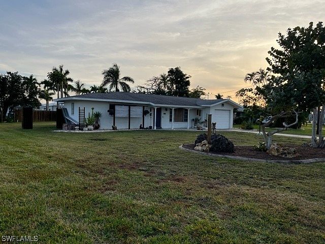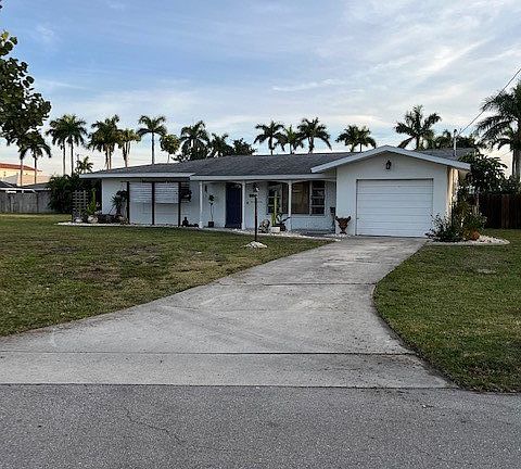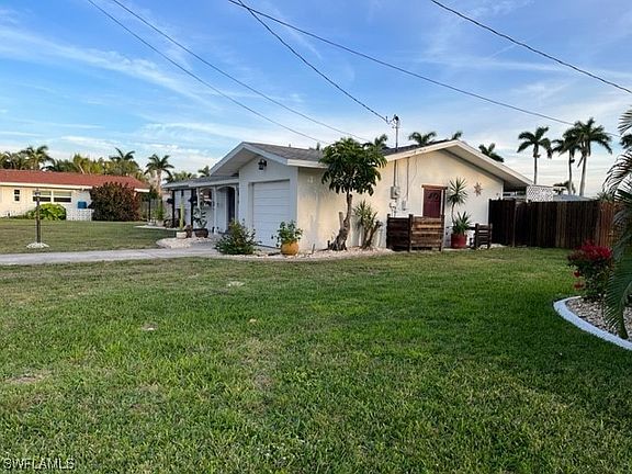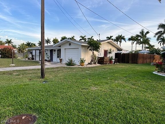 Property is located in the highly desired Cape Coral Yacht Club area and surrounded by waterfront homes and newer homes. The streets are lined with Royal Palm trees. Just a short bike ride away to the yacht club where you can enjoy the beach, dinner and the sunset. Home was damaged during Hurricane Ian and has been completely remediated except for kitchen (functional and ready for your kitchen design). Large lot with shed. Roof is a 2016 and in Good condition.