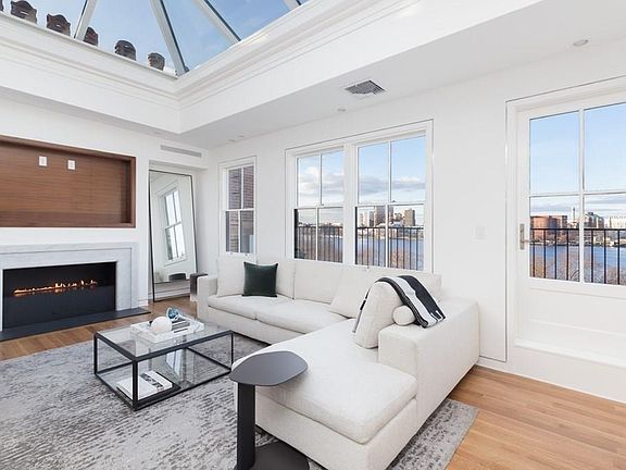 Ultra luxury 4 Bedroom Waterside Beacon St. Penthouse with direct elevator access, amazing River views, 2 Garage parking spaces and 2 private decks. Brand new construction just completed 2020, flexible floor plan and all high end finishes. Enormous family room with skylights and terrace offering incredible Charles River views and sunsets. Gourmet chef's kitchen features Wolf/ Sub Zero appliances, 2 sinks, 2 islands, gas cooking and marble counters. Elegant formal dining room with city views, perfect for entertaining with wet bar and large balcony. Entertainment size Livingroom, library and office complete this home. Spacious master bedroom suite with walk in closet, marble bath, separate walk in steam shower. Three additional bedrooms can function as game/ media rooms. Three more full bathrooms and two powder rooms. Three gas fireplaces, laundry room, 2 washers/ 2 dryers, central air conditioning. See attached Video tour, 3D Matterport tour, floor plans & specs.
