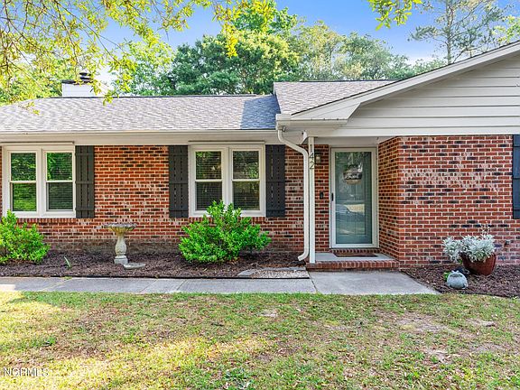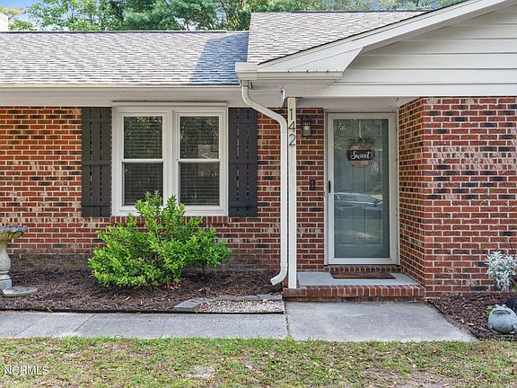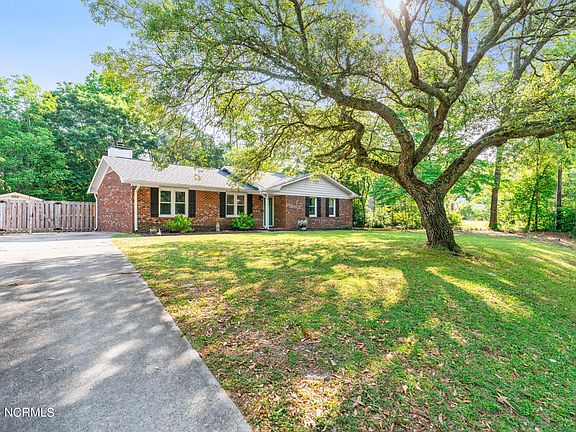 There is SO much to love about this charming 3 bedroom, 1.5 bath, brick ranch home. Nestled between the Ogden/ Porters Neck area of Wilmington, this home sits on a generous 0.41-acre lot, offering plenty of space and privacy with NO HOA + NO city taxes! Quintessentially Wilmington, the mature live oak tree in the front yard provides welcomed shade with adorable curb appeal. Stepping inside, the first thing you'll notice is the updated kitchen featuring elegant granite countertops, new cabinetry with uppers that extend to the ceiling, an island with pendant lighting above, stainless steel appliances and a reverse osmosis water filtration system! Complemented by the eat-in dining area with its charming board and batten accents, floral wallpaper and built-in storage benches. The open floor plan seamlessly connects the kitchen/ dining area to the living room where a large brick fireplace sets the tone for cozy nights at home. Located on the opposite end of the home, three bedrooms share a hall bathroom - while the larger primary bedroom contains a private half bath ensuite. Stepping outside from the kitchen, the spacious screened-in porch and connecting open deck (added in 2022) overlooks the backyard paradise - making it the perfect spot for relaxing or entertaining! The fenced-in backyard has it all with mature trees providing shade and privacy in the back with plenty of grass for play in the front portion of the space, 2 storage sheds (one that is fully wired) and a sweet little garden area! Have peace of mind knowing: Easy care & durable LVP flooring throughout living/dining/kitchen, New roof 2020, New windows 2022, Septic pumped and jetted, new D-Box 2024. Fabulous location - minutes to shopping, dining, entertainment, golf, boating/kayaking, medical facilities, & major highways. Nearby Ogden Park has ball fields, a pond, skate park & off-leash dog park, plus BBQ & picnic areas. A 10 minute drive to Mayfaire, and 15 minutes to pristine Wrightsville Beach.
