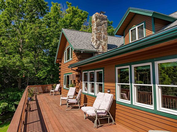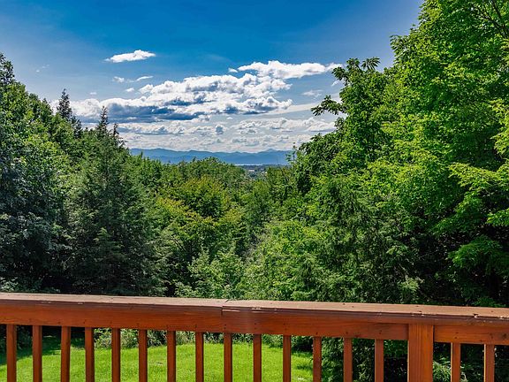 Located in the private Blackberry Ridge neighborhood, tucked in among the maples and pines with spectacular views of the Adirondacks and Lake Champlain, this solid log home looks completely at home on this 3.86 acre property. Carefully constructed to ensure a warm interior, this sense of snug comfort with great views of the surrounding countryside is the heart of the design of this distinctive property. From the moment you walk in, you are wowed by the beautiful views and panoramic acreage through walls of windows in the great room with vaulted ceiling and wood stove, a spacious 3-season room and wrap-around deck perfect for enjoying sunsets and admiring the property's beauty. The well-organized kitchen is just steps away from the dining room, you can whip up a beautiful brunch and serve buffet-style from the spacious kitchen counter. The den has a closet that could be the 4th bedroom or office. Upstairs gleaming pine floors add character to two generously sized bedrooms including a primary bedroom with and walk-in closet and bathroom plus a flex space overlooking the great room and mountains. The full walk-out lower level is finished with a wood stove in the family room, plus unfinished space for storage. Just steps away is a two-car, detached garage with overhead storage. This landscaped oasis is ideally located in a small neighborhood close to shopping, schools, interstate and the airport. Welcome home!
