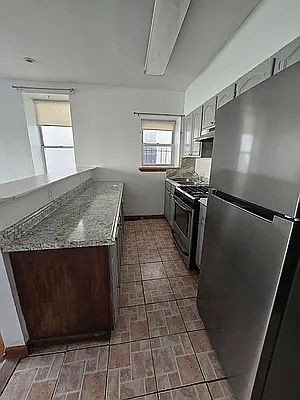 This fully renovated two-bedroom apartment features an open-concept living room and kitchen, highlighted by a large window that floods the space with natural light and warmth. The bedrooms are spacious, offering ample closet storage. Heat and hot water are included. Conveniently situated near restaurants, bars, and supermarkets, the apartment is just a short walk from the 3 train at Rockaway or Saratoga stations