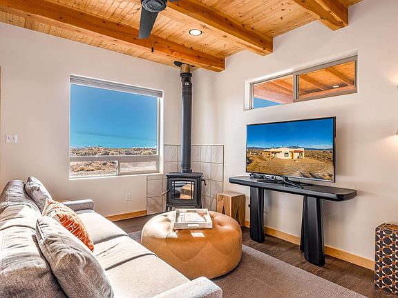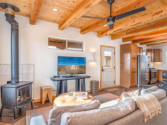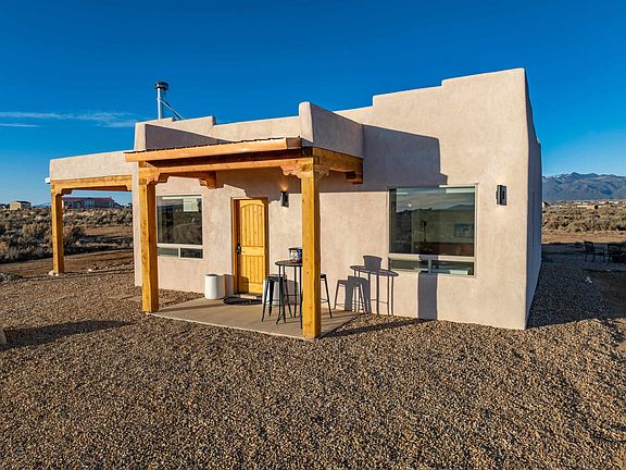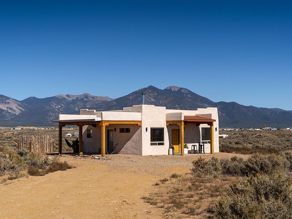 Discover the allure of 142 Camino Tortuga, just a 15-minute drive from the vibrant Taos Plaza! This recently built home is located on a corner lot on the sprawling Taos mesa with stunning views in every direction. With two bedrooms and two bathrooms, and an open-concept living area and kitchen, the interior offers a seamless blend of modern comfort and spaciousness. Natural light floods the interior from the southwest-facing windows, and whether you're enjoying your morning coffee in the primary bedroom or preparing a meal in the kitchen, the stunning mountain vistas will be your constant companion. Step outside onto the covered patio to enjoy the fresh mountain air. A detached single-car garage and attached carport provide convenient parking options on the property. This home is a sanctuary where the tranquility of nature meets modern living, offering a retreat that captures the essence of mountain living within reach of the culture and amenities of Taos. Ask about the convenient option of keeping this property turn-key and furnished for your short-term rental!