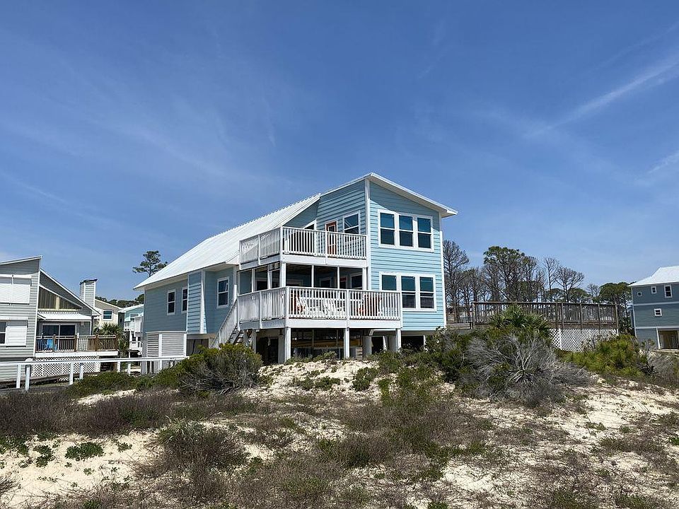 STUNNING 3BR/4BA GULF FRONT HOME JUST STEPS FROM THE BEACH ON CAPE SAN BLAS!This beautifully designed home features calming colors, an airy-open floor plan, windows with views of the water from practically every room.The gorgeous kitchen welcomes you w/a wet bar, ice machine, dining nook, granite counter-tops, a full bath & laundry room that leads into the breathtaking great room w/beamed ceilings, a fireplace w/wood paneling accents & covered deck. Both floors boast master suites w/en-suites & added living areas & access to a deck perfect for relaxing, grilling & entertaining! The cozy bunk room is perfect for kids! With 3 nearby boat ramps, you can launch your boat for a day of world class fishing in the Gulf, snorkel, kayak, swim, relax & fall in love with the natural surroundings that Cape San Blas has to offer. Check out the 3D tour!