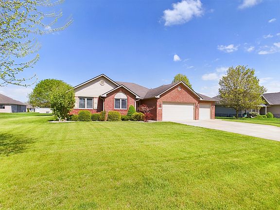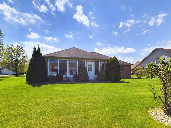 Welcome to your dream home in Pendle Point, nestled in the heart of South Madison schools district! This exquisite Mustin built ranch boasts timeless brick exterior, offering both durability and classic charm. Step inside to discover a spacious haven, featuring 3 bedrooms and 2 full baths meticulously designed to cater to your every need. Gleaming laminate floors lead you through an open concept living room, kitchen, and eat-in area, perfect for effortless entertaining or cozy family gatherings. Hosting formal dinners will be a delight in the separate dining room, providing an elegant space for special occasions. But the true gem of this home? The large sunroom, the seller's favorite room, where panoramic views of the lush backyard invite relaxation and tranquility. Practicality meets luxury with a 3-car garage ensuring ample storage space for vehicles and outdoor gear. And with NO HOAs to contend with, you'll enjoy the freedom to customize your oasis to perfection. Updates abound, with carpet and flooring, as well as fresh paint, all just 2 years young, ensuring a modern and inviting ambiance throughout. Conveniently located with easy access to I-69, commuting to bustling Indianapolis or vibrant Fort Wayne is a breeze, making this home not just a haven, but a gateway to endless possibilities.