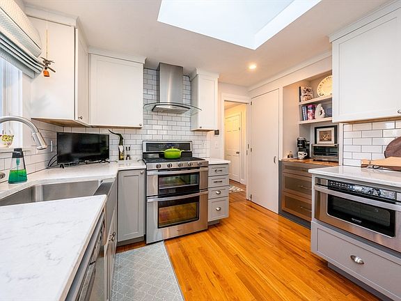 The moment you step into 142 Chestnut Street, you'll feel the love and care the owners have poured into this spectacular ranch. Enjoy easy one-floor living at its best, with hardwood floors throughout, abundant closet space, and an open living-dining room perfect for gatherings. The kitchen was designed with entertaining in mind, featuring custom cabinetry, a skylight, quartz counters, stainless steel appliances, and a charming coffee bar. A pocket door leads to the dining room, which offers a built-in pantry, sunny windows, an open flow to the living room, and a slider to the private backyard. The primary suite includes a walk-in closet, hardwood floors, and a beautifully detailed full bath. The heated sunroom-complete with built-ins and access to the garage-makes an ideal craft room, den, or home office. This home offers everything you need for economical ranch living, including Andersen windows, an updated gas heater, and low property taxes.