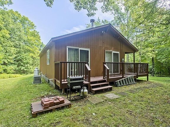 Tucked away off the road and nestled by the woods, this 1bed 1bath home WITH CENTRAL AC is simply an oasis. On 9.24 beautiful acres this incredible property is an excellent value and has been tastefully updated in the past few years. There's much to love outside of course, with a large cleared yard surrounded by trails and woods to explore and a large porch of your dreams wrapping around half your home to relax on. Inside the open concept layout gives you just the right amount of space, and you'll be surprised at how large the bathroom and shower are. Move right in and enjoy!