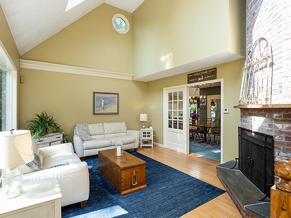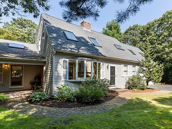 Welcome home to this bright and spacious contemporary cape style home with an open floor plan and cathedral ceilings. The great room boasts a gorgeous fireplace, palladium windows, skylights, double wide slider to decks and streaming sunlight. Kitchen is completely updated with granite countertops, stainless steel appliances and even a wine/liquor fridge! Hardwood and wide pine floors through-out with tiled baths. The huge en-suite master on 2nd floor has cathedral ceilings with exposed beams and juliette balcony. Master bath was just updated and features volcanic limestone soaking tub, quartz countertops and seamless glass tiled shower. Partially finished lower level offers a fully sound proofed room for music lovers or fitness buffs and a flexible floor plan for home office, and family room with a woodworking stove. The spacious 3-season room, large, private backyard and expansive deck make for year round entertaining! This property has easy access to Rte 6 for off-Cape commuting, shopping and access to Barnstable restaurants and beaches!