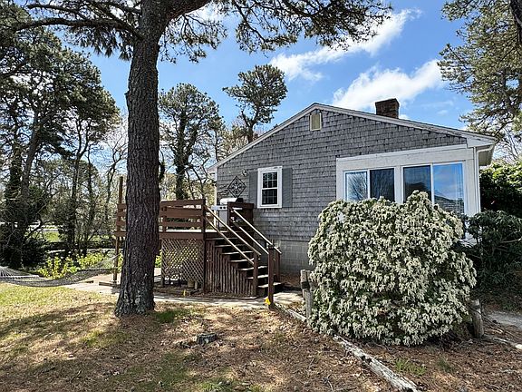 Coming to market for the first time since its original purchase, this well-loved single-family home has been enjoyed by three generations of the same family and is ready for its next chapter. Located within walking distance to several beaches on Nantucket Sound, this year-round, 3-bedroom 1 bathroom ranch sits on a partially wooded lot in a quiet residential neighborhood. Light-filled bedrooms feature hardwood floors which carry through to the main living space. A generous eat-in kitchen connects to an airy sunroom and offers direct access to the outdoor deck overlooking the backyard and patio area. A bright and generous walk-out basement with washer/dryer offers many opportunities for additional storage or potential living space. With the right vision and some simple cosmetic upgrades, you can make this house your ideal Cape Cod home. NOT located in a flood zone. Property has a failed septic inspection and Buyers to be responsible for replacement after purchase. Septic must be replaced by May of 2026. Survey and Engineering for a 3-bedroom septic has been completed and will be passed on to the Buyers for installation. Please see attached documents