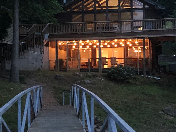 PIGEON ROOST CREEK-Stunning two level, 3BR/2BA, completely renovated! Two acre lot with two car detached garage. Open floorplan with floor to ceiling windows to enjoy the wide open lake views. Lower level features a kitchenette, living area, two guest rooms and bath. Enjoy the evenings on the screened porch or the covered patio. Gentle walk to double slip dock. Close to Trident Marina. Furnished!