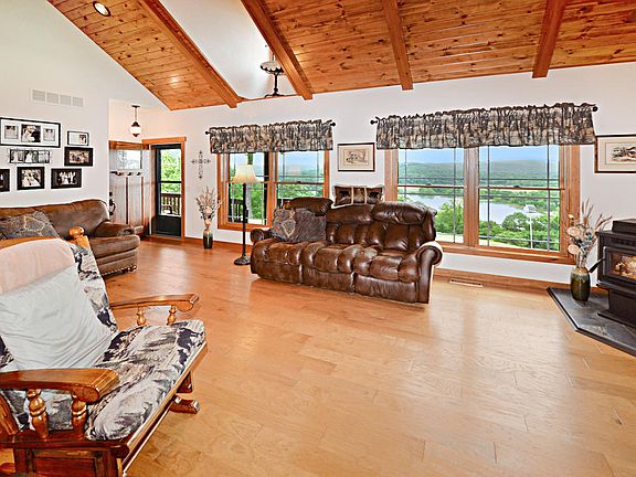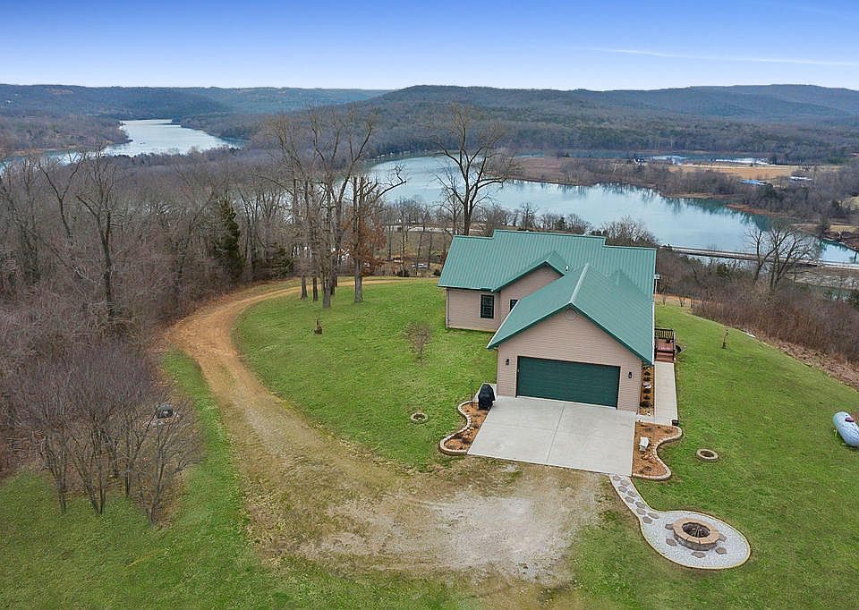 Welcome to the Ultimate Ozark Mountain Top Gated Retreat! This ultra private custom built 2645 sq. ft. property features breathtaking panoramic views of Table Rock Lake from practically every room on the main level! The spacious Open floor plan offers an abundance of high quality finishes including durable steel siding and roofing, knotty pine vaulted ceiling, pocket doors and trim, cedar split railing, a chef's kitchen with custom built-in pantry & 13' spacious counter for cooking, rustic hickory cabinetry, flooring & staircase, Anderson tilt-in windows for easy cleaning, wood pellet stove, basement with cozy family room & bedroom, tons of storage, 2 car garage, flat level yard perfect for relaxing around the fire pit & watching wildlife and so much more! Public boat-launch & lake access located just 3 minutes below the home! Conveniently located within a short drive to major attractions: Branson Landing, Top of the Rock & Big Cedar, Dogwood Canyon, Silver Dollar City & Historic Eureka Springs! This home is a MUST SEE!