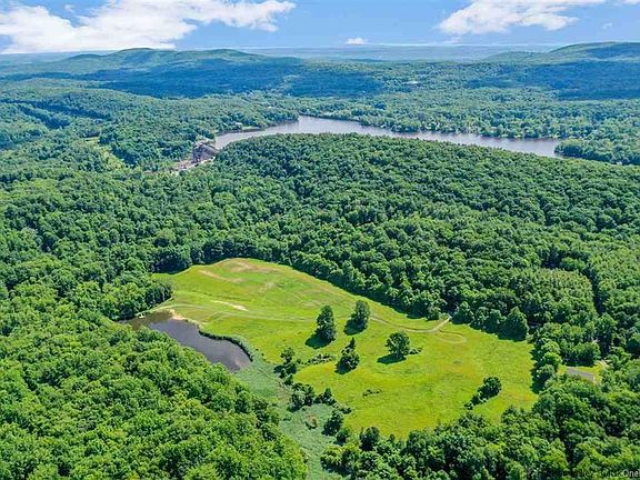Welcome to Coutant Falls & Meadows, an expansive stream side Estate where a charming 1890's farmhouse blends with a bold contemporary addition. Home is framed by over 80 acres of truly amazing, almost endless land. Enjoy rolling wildflower fields overlooking the massive spring fed pond, multiple levels of water cascading down and flowing right through the homes backyard. Looking to expand, 40 acres of forest with an extensive trail system leading to multiple building/camping plateaus and views for miles. Step inside this expansive 6-bedroom 4-bathroom home where charm, warmth and great livability meet. The original part of the residence boasts a formal living room with French doors flowing out to the wrap around front porch. Four bedrooms and 2 full baths are enhanced with painted oak floors and an arts & craft style decor. The lower level (on grade) is the main entertaining and living space of the home.