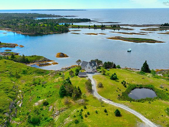 This truly is a legacy property that may only appear once in a generation. This south-facing, custom designed home was strategically placed to frame the postcard views from sunrise to sunset. The large, 4.3 acre lot contains a small pond but also encompasses a protected cove in addition to over 1035 ft. of pristine ocean frontage. Incredibly, it is surrounded on two sides by the majestic "Barrens" of the common lands, which will remain in their natural state forever. The three bedroom home consists of a large foyer and 3-pc bathroom that opens up into the living and dining room and kitchen all with stunning views. An insulated and wired double garage has been converted into a workshop but could also be transformed into a large family or rec room or turned back into a double garage. Downstairs the lower level takes full advantage of the slope of the lot with large expansive windows that add much natural light to a downstairs bedroom and large family room. A large laundry / utility room, full bathroom, and a walkout to a covered deck complete the lower level. On the second level a large upstairs hallway opens up to a charming studio with numerous skylights to frame the ever changing colours of the "Barrens". A small room with a kitchen sink and existing plumbing could easily be converted into a full bathroom. A large primary bedroom with ensuite and views that arguably could be called the Best in Blue Rocks will embrace you. A second large bedroom looking east perfectly aligned for the sunrise each morning completes the 2nd floor. A small beach along the wharf allows easy access to one of the premiere kayaking destinations in the country. The outer islands of Blue Rocks and the small fishing huts are forever your neighbours. A very private sanctuary but remarkably only 10 minutes to the UNESCO Town of Lunenburg and only 75 minutes to the International airport and the city of Halifax. It must be seen to be appreciated.