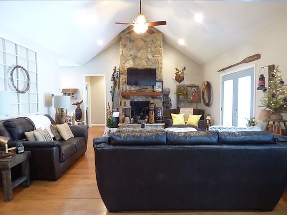 - Interior Features: 1st Floor Bedroom, Ceiling Fan(s), Walk-in Closet(s), 1st Floor Bathroom, Fireplace, High Ceilings, Trey Ceilings, Vaulted Ceilings, Washer/Dryer Connection, Tile Baths, Foyer
