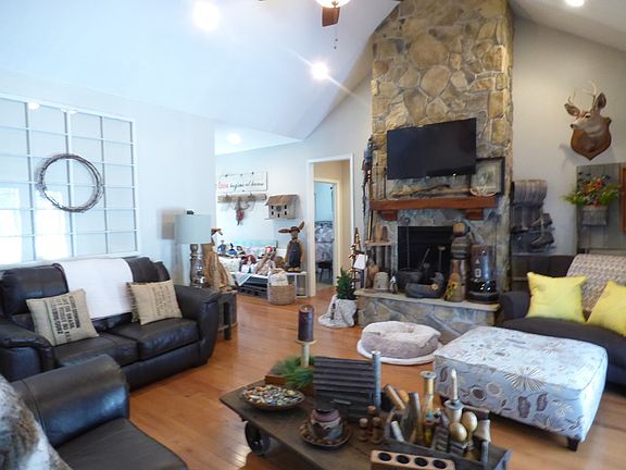 This home is situated on almost 1/2 an acre & features a great room with vaulted ceiling, floor to ceiling stone gas fireplace, access to the back porch & deck area. The kitchen boasts newer ss appliances & breakfast nook. The master suite with it's tray ceiling, walk-in closet & well appointed bath is separate from the secondary bedrooms for more privacy. Bonus room & den are on the 2nd floor.