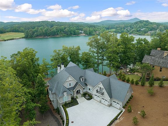 This spectacular 4850 square foot French Country waterfront masterpiece, completed in 2021, is luxury living at its finest. The westward facing 1.72 acre lot offers breathtaking sunsets, approximately 356’ of water frontage with erosion control. The 5 bedroom and 5 full bath (plus 2 half baths) home is professionally decorated and furnished by CC&D Interior Design Studio and Angie Case Interiors. The oversized auto court creates the first impression for the private oasis. This magnificent home was meticulously designed with uncompromising quality, special finishes and features throughout. The home shines with white Carrera Italian marble, stone tile floors, plantation shutters, and custom light features. Two sets of Kolbe multi-slide doors fosters brightness and flow between the vaulted ceiling great room, kitchen and partially vaulted screened in porch. The great room and screened in porch have a custom solid cement fireplace with gas logs and the porch has stone floors and phantom screens to emphasize the view, a grill station, and an additional 95% block screen for use at the dining room table. The 180-degree view of the lake is fabulous with views of the signature 15th hole. The built-in bar is perfectly positioned in the middle of the great room for easy entertainment. In the kitchen, enjoy the huge island with beautiful Calacatta Colorado Quartz with floor to ceiling cabinets with glass, satin brass fixtures, Monogram appliances and a large walk in pantry with a built in appliance bar. The master suite is oversized with incredible lake views and the master bath includes an MTI cultured large stone air tub and spacious closet system. Above the 3-car oversized garage, there is 750+ square feet of finished space, currently used as a 5th bedroom, office and living area with the accompanying full bathroom. The terrace level includes 3 ensuite bedrooms, a rec room, second kitchen, half bath and storage room. Double sliding glass doors open up to a covered patio, enclosed outdoor shower, fire pit and a gently sloped short path that leads to the lake access Kroeger dock approved by the Reserve. The dock is accompanied by an air boat lift with a higher power lifting motor and 2 wave runner slips. Should an elevator be needed in the future, the shaft for easy install is located right off the entry. The home offers cutting edge technology with a Savant media system integrated throughout the home/dock and a Generac generator. Convenient access/proximity to Clemson, Seneca, Easley, and Greenville. The Reserve at Lake Keowee offers a Jack Nicklaus Signature Golf Course, a par 3 practice facility with a driving range and outdoor bar, clubhouse with Fine Dining, pub area and wine bar, Fitness Center, Hiking Trails, 4 Har-Tru Tennis Courts, Lakeside Resort-Style Pool and Cabana, Settlement Pool, 8 Pickle-ball Courts, Marina offering both slips and boat rentals, the Market, and Select Provisions. This gated community offers many activities including fitness classes and various social clubs. The fiber-optic internet system ensures connections throughout the community property. The Reserve at Lake Keowee is a full amenity lakefront golf community, making this property a must see! $72,000 premier membership is required at closing. 24 hours notice requested