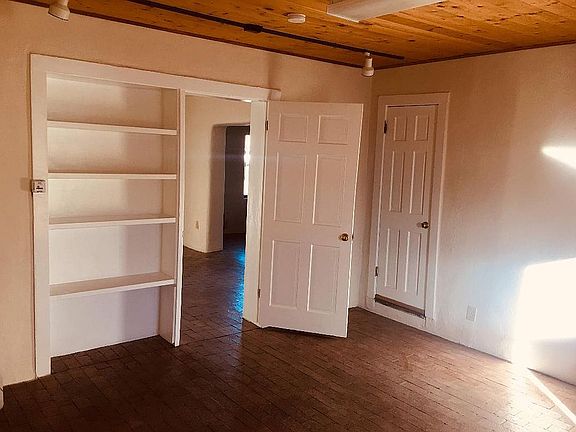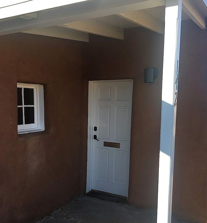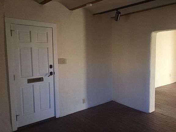 Historic adobe with brick floors, walled garden and parking, north end Guadalupe street, walking distance to plaza. New simple kitchen - quartz counter, sink, refrigerator, custom cabinetry. Can be used commercially or live-work situation.