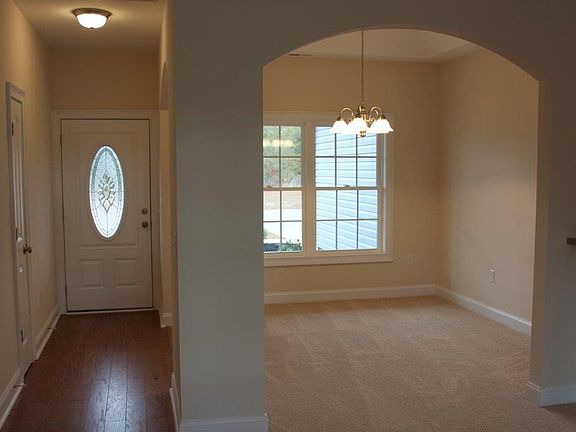 Popular Hickory 70, with open floor plan, split bedrooms, large relaxing front porch. Hardwood flooring in the foyer, and dining room has tray ceiling. Spacious kitchen has wrap around breakfast counter, breakfast nook, lots of counter top space and solid wood cabinets with crown molding and knobs, stainless steel appliances. Private 12' x 14' Master suite with vaulted ceiling, ceiling fan w/light, huge L shaped walk-in closet, two sinks, raised height vanity, garden tub with obscure privacy window to let light in, plus a separate walk-in shower. Rear screened porch and concrete patio. Smooth ceilings, 30 year roof shingles, cottage style doors, gutters, sodded yard, fully finished 21' x 23' garage with automatic door opener, pull down stairs to attic storage. A country quiet community located within 20 minutes of N Myrtle Beach and the beach. Within minutes of downtown Loris, the Loris nature Park, Loris Community Hospital, and McLeod Family Health Center. Large home sites, lake and wooded views. Video is for illustrative purposes only and may be of similar home built elsewhere. Square footage is approximate and not guaranteed. Buyer is responsible for verification.