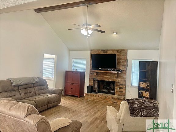 Beautiful 3 bed 2 bath brick home with new roof! Spacious living room with cathedral ceilings and open dining room. New vinyl plank flooring in main living areas and new carpet in bedrooms. Spacious kitchen with breakfast area and plenty of pantry space. Primary bedroom features newly updated bathroom with walk in closet. Screened in back porch over looking the large fenced in backyard. 2 car garage. Community Park. Conveniently located close to Ft Stewart, Hunter Army Air Field, Hyundai, Richmond Hill schools, restaurants, parks, shopping, I95, and Hwy 17.