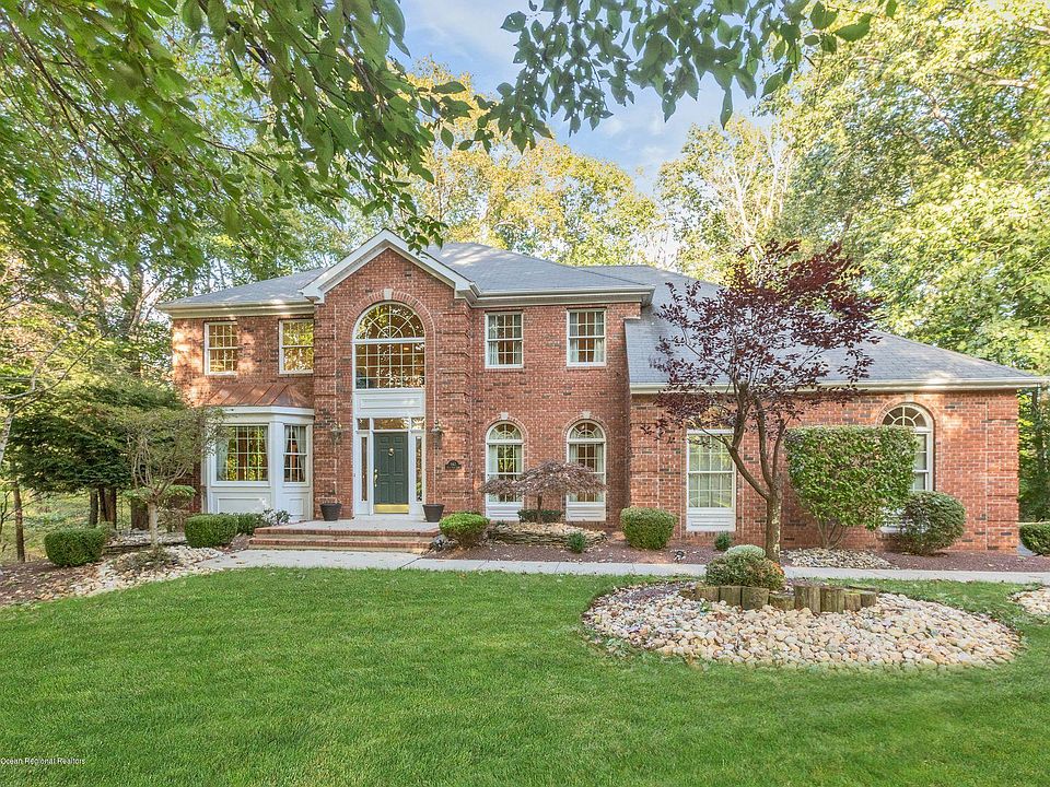 Stunning Brick front home with incredible curb appeal in one of Freehold Townships most desirable subdivisions '' Top Of The Hill''. Picture perfect in every way. Gleaming Hardwood flooring on first floor, detailed molding thru-out. Kitchen features wood flooring, Stainless Jenn air Stove, Stainless appliances, large SS Sink.Newer Granite counters and vaulted ceiling with skylight! Large Dining room with Tray Ceiling ,crown molding, HW floors, and Palladium Windows. Formal LR with french doors to amazing family room featuring a gas fireplace. Upstairs find a Master BR with huge Walk in closet and Master Bath with large soaking tub, double sinks and shower.Full Basement, clean, dry , and newer Hi efficiency furnace. Truly Move in Condition home. Spotless! A Must see!