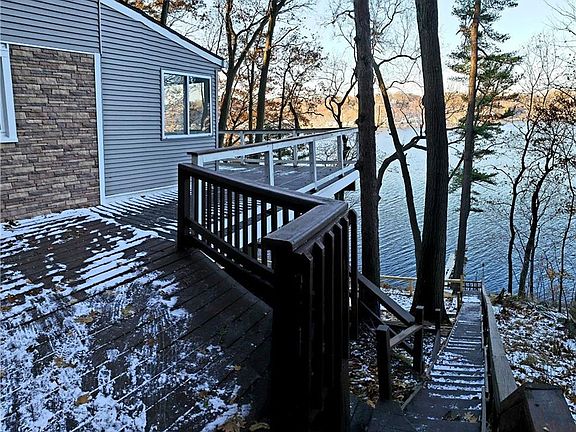 Rare secluded hillside Webster home with dock and 119' Irondequoit bay frontage for amazing year round views. There are steps, but you're well compensated with a one of kind private retreat that has been fully remodeled, and comes furnished. Open flr. plan w/ Kitchen/living combo open to front rm. and huge wraparound composite deck. Giant oaks, private beach, great dock for multiple watercraft, lg deck, updated kit., w/ appliances, usable attic, 1 1/2 baths. The choices are unlimited for this spectacular lot on the waterfront w/ a year round home to use as you choose. Don't miss out on this one!
