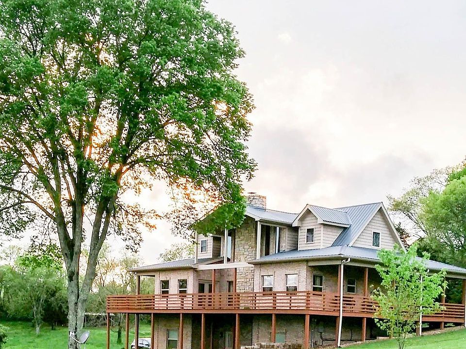 Unique, best kept secret, lodge-like home. Fabulous! Privately set on 12+ acres, INLAW QUARTERS, pine doors, cedar trim, Douglas fir beams+posts. Oak floors, spruce ceiling, walnut cabinets, 22' stone FP, balcony. Pole barn, 8' covered porch around house. Seller offering $15,000 concession to build a garage.