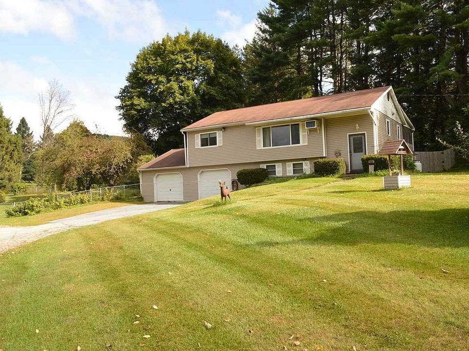 This home sits on one acre of level, park-like and fenced property with fruit trees including apple, pear and peach. This is a BOHA 3 bdrm home, 3rd bdrm upstairs was turned into a dining room. Hardwood floors on the upper level. Lower level has family room, bedroom, 1/2 bath and laundry. The electric has been recently updated, the well pump, roof, windows and kitchen have been updated within last 10 years. 2 large garages with storage above. 10x8 storage shed included. Taxes with STAR rebate are $4285. This home is well-maintained and priced to sell...won't last!